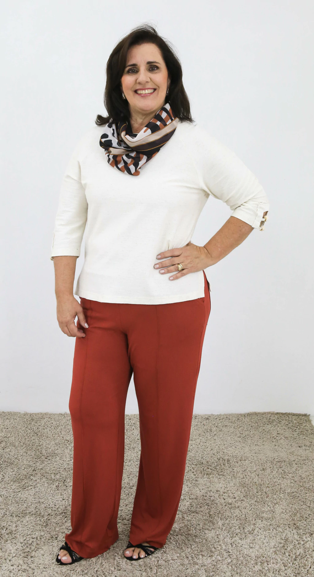 Conjunto Pantalona Manga Curta Gola Rolê Pinhão
