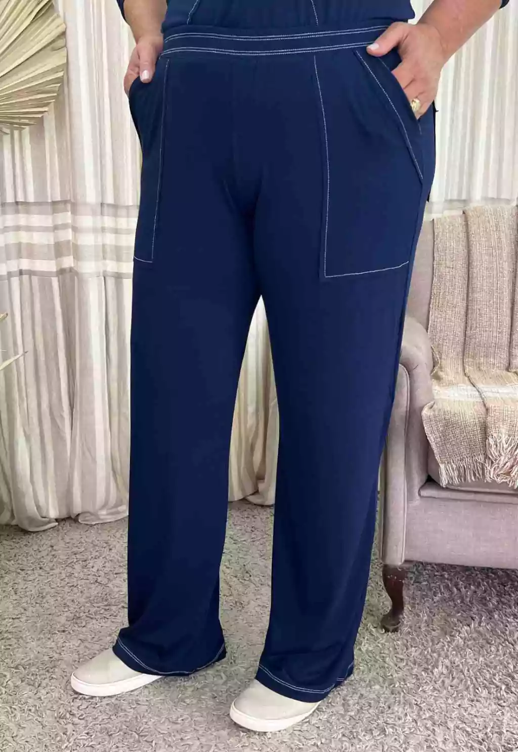 A nossa modelagem é mais ampla que as marcas convencionais. Desta forma, disponibilizamos uma tabela de medidas de acordo com o seu biotipo. Para saber a numeração mais adequada, meça o seu busto, cintura e quadril e consulte a nossa tabela, nas “Informações do Produto”.